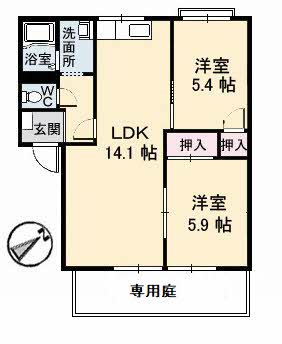 | 間取り | LDK 14.1・洋室 5.9・洋室 5.4(帖) |